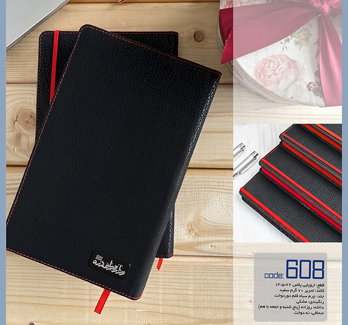 سررسید اروپایی پلاس جلد چرم سیاه قلم (608)